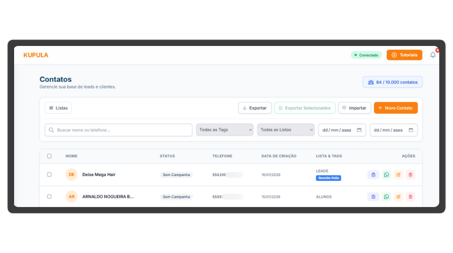 Sim! Conecte seu número existente de forma rápida e segura via QR Code, sem perder seus contatos.